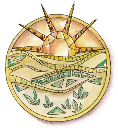 The Morninglord's holy symbol. Simpler designs exist, but the mark of the sunrise is constant across all.